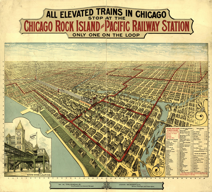 Bird’s Eye View Map of Chicago Loop and Elevated Train System