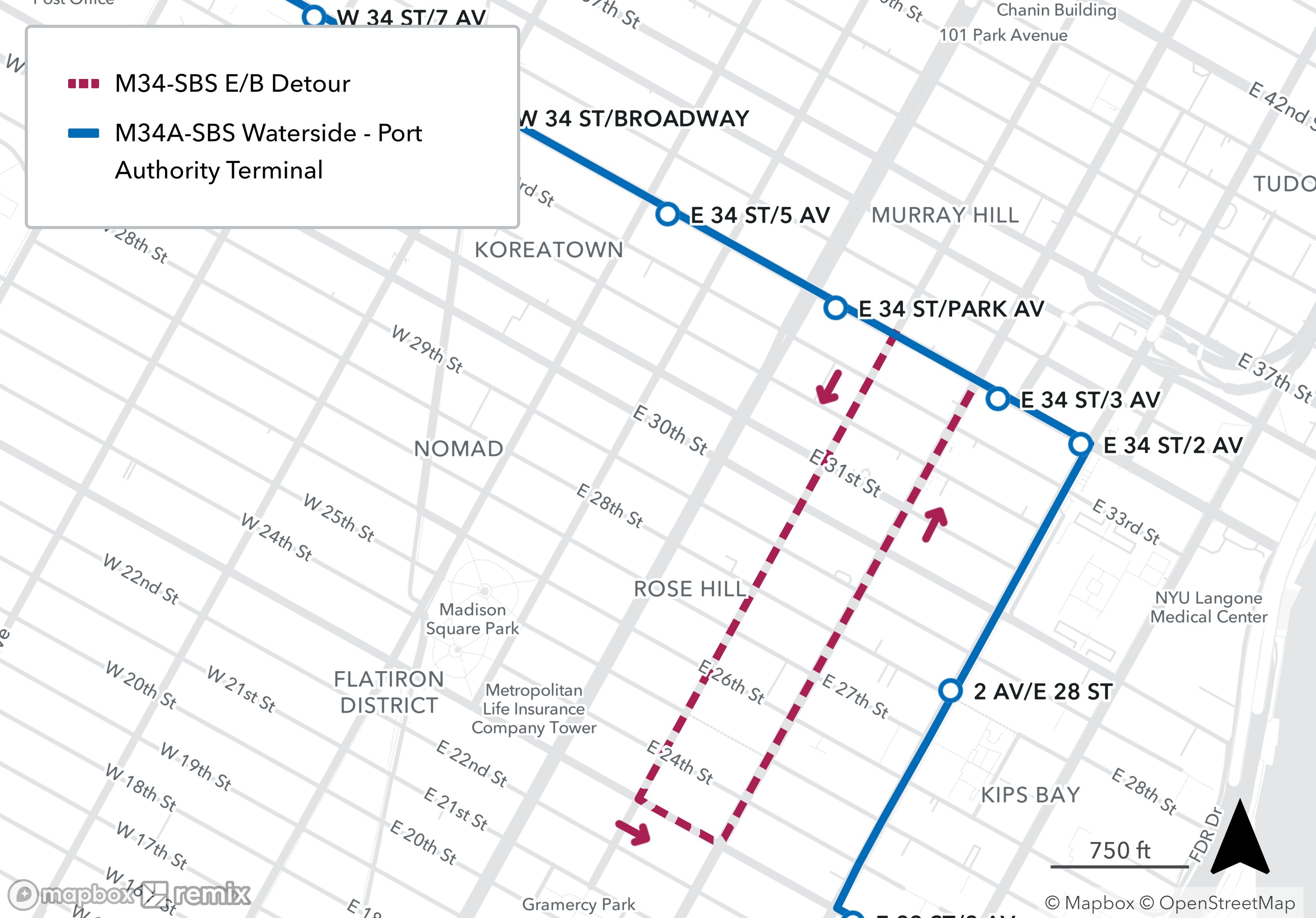 NYCT Bus on X: “Use this map to see how M34 SBS and M34A SBS buses